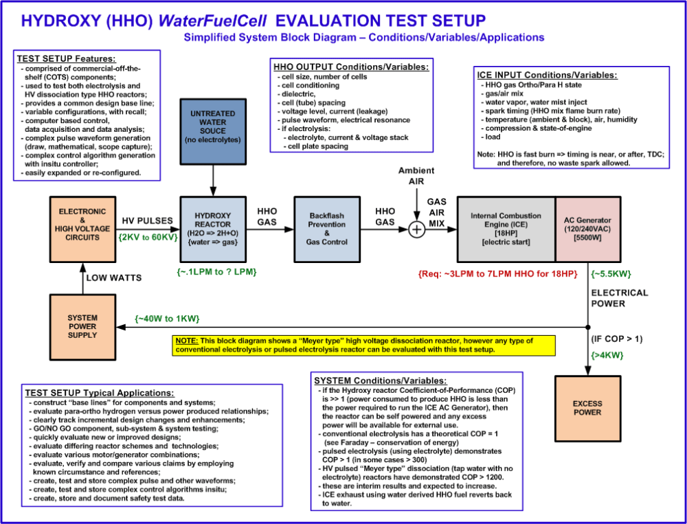 This “HHO WaterFuelCell Evaluation Test Setup” can be an invaluable aid throughout a project’s design, development, production, test and evaluation phases.