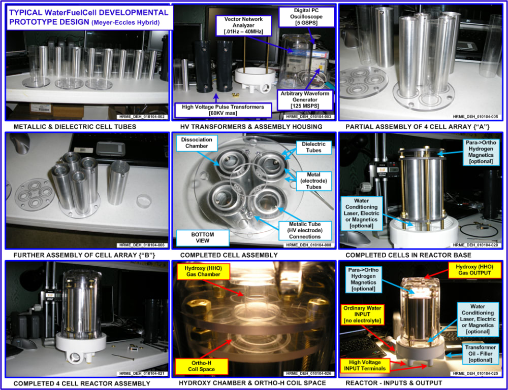 Attached figures show the test setup configuration along with a typical example of a “Meyer/Eccles hybrid” type tube cell reactor. This reactor was developed in anticipation of a US Congressional Bill for the “$100M H-Prize Competition” back in 2006; however an open competition never did materialize.