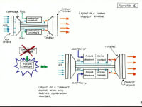 The idea of a full electric combustion chamber for turbojet engines comes from the observation of plasmas generated using a common microwave oven. By concentrating the microwaves, you can create jets of plasma from common air. What began as a scientific hobby has matured me the idea of using this phenomenon for the propulsion of atmospheric aircraft, still enjoying the turbojet engines that are a proven technology. My proposal then is to develop some "reaction chambers" to replace the current combustion chambers used in turbojet engines (Pic.1). These reaction chambers, with some measures (like antenna, etc.), concentrating the microwaves would lead to the state of plasma part of the air sucked in by the compressor and, putting into contact with the rest of the air, temperature and then volume would increase thus going to perform the same task of a current combustion chamber, however without the use of a drop of fuel (Pic.2).