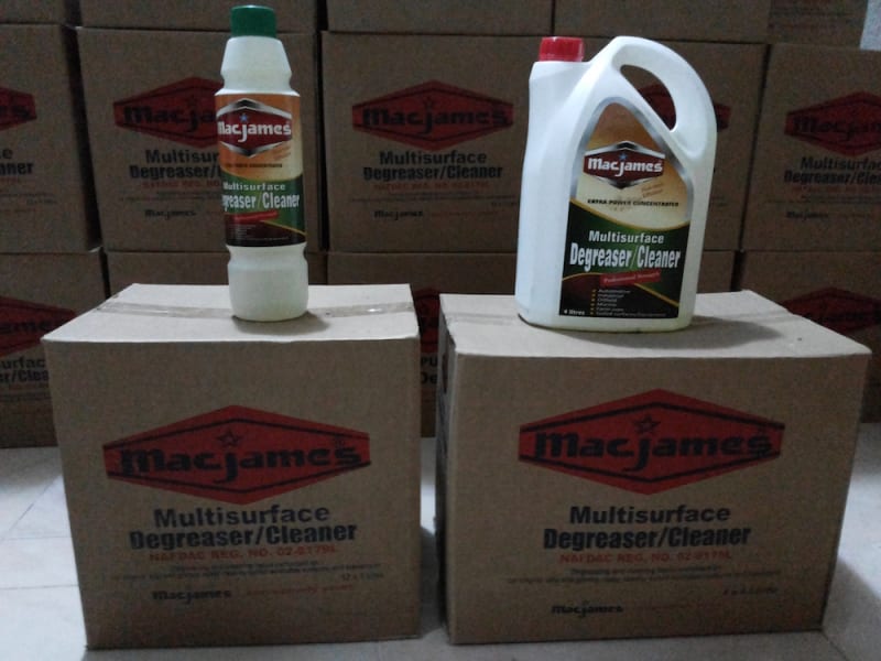 My innovation is MACJAMES® MULTISURFACE DEGREASER/CLEANER. It is an economical multi-surface/multipurpose Household-Industrial-and-Institutional (HI&I) degreaser/cleaner that emulsifies and cleanses organic and inorganic dirt from various washable surfaces/substrates (metal, plastic, wood, concrete, rubber, PVC, ceramic, leather, rugs, fabric, etc) without harming them or health of users, unlike the popular ones in use today. It is a surface active emulsifying, non-solvent based, non-acidic, and non-toxic foaming cleaner. It emulsifies grease, oil, rust, asphalt, heavy dirt, carbon deposits, grime, slag, sludge, mud, scales, soot, mildew and mould, others alike, with it and cleanses them from the various washable substrates without deforming their surfaces, unlike other degreasers/cleaners in the market today. It is an economically efficient heavy and light duty(water-diluted only) ready-and-easy to apply degreaser/cleaner with safe surface active strength and emulsifying properties.