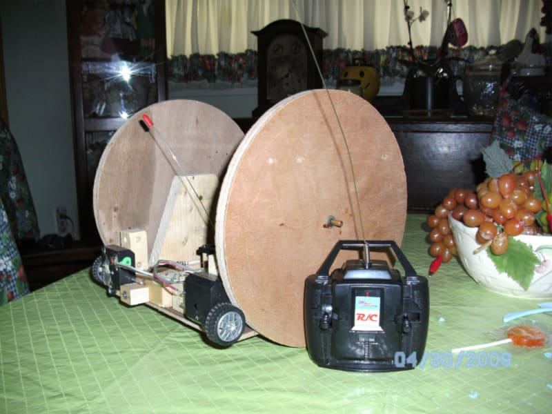 This toy has the capability to spin in place or make direct angle degree turns. It can drive forward or backward and turn gradually also. The ability will be beneficial because the unit will be able to maneuver in tight places much more gracefully than conventional vehicles. This idea can not only be applied as a toy, but also as an automotive and aquatic technology. Once the scale is enlarged to full size the benefits will be countless. For instance, parallel parking will be a snap. All you would need to do is pull up right beside where to park, next turn the wheels 90 degrees by moving one wheel right and the other left, then pull straight in and then rotate the wheels again to the correct direction. This concept will be so easy a computer could drive these units reducing the chance for accidents or injury. These computer driven vehicles could be set to obey all speed limits and traffic codes thus making them safe plus capable of emergency protocols if needed, and secure because the vehicle can be programmed to know the driver (or occupants as the case may be) which would eliminate the need for keys or other anti-theft devices. The smaller design would mean less congestion on the freeways saving both time and money by eradicating traffic jams. It’s smaller size also will make the item cheaper to produce because of the smaller number of parts needed. Another benefit this concept has is lower power consumption than comparable items which would not only decrease the demand for fossil fuels but also pave a way for other products, for instance solar energies, to expand and improve. As the Market grasps this idea and enjoys the freedoms it relinquishes this concept will flourish. There will be no special or different principles required for manufacture and most of the components needed for production are already available.