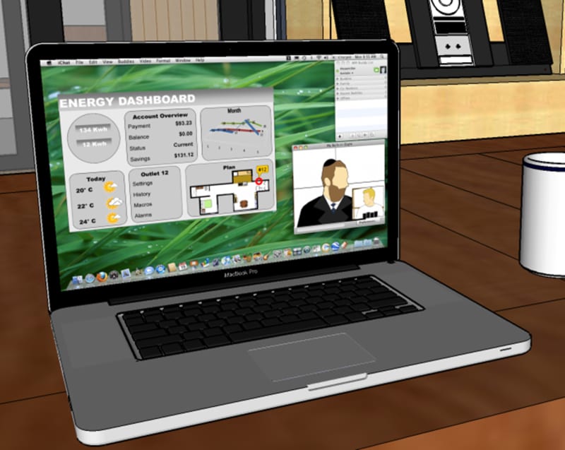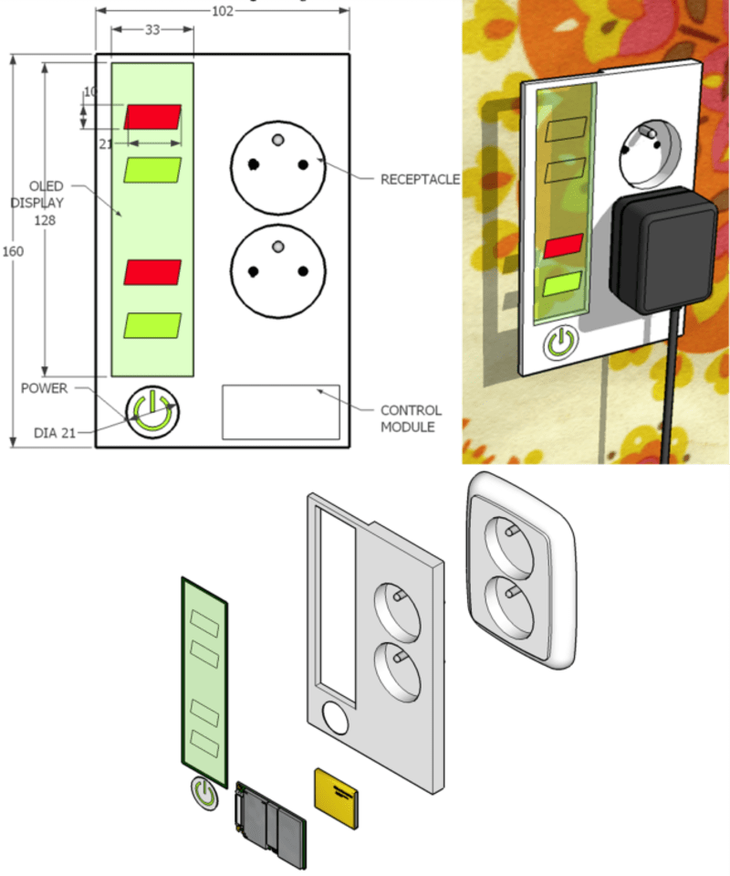 This entry seeks to find a way to broaden our consciousness of our electrical consumption through visual cues and information modeling. The primary issue we would like to “illuminate” is Phantom Power Loads from electronic devices and appliances. Most electronic devices continue to draw a small amount of power when they are switched off. The power consumed in stand-by mode is generally used for remote control features and clock functions. Power adapters for laptops, cell phones and personal media players consume power without providing such features and continue to drain precious resources even when not powering or charging the intended device. Removing the device without unplugging the adapter has not been analyzed in detail and I expect it would produce shocking conclusions as well. The average home expends 75% of its total electricity usage on Phantom Power Loads, essentially wasting 2/3 of our resources and ranking as one of the major contributors to green house gasses. Phantom Power Loads represents a staggering 11% of all electricity produced. Clearly, Phantom Power Loads are indefensible for both consumers and manufacturers. As a society we need a fundamental reimaging of our power usage. The simplest and most cost effective solution is retrofitting existing receptacles with a surge protector-like device that plugs into a standard receptacle. In addition to providing surge protection the device also provides a visual display of power usage and a convenient power off button that shuts off all power to the receptacle. The device utilizes an ultra low power Bluetooth module that creates a mesh network that connects to other receptacles and devices and interfaces with laptops, desktops and smart phones. Information is bidirectional and capable of providing power usage information for each device enabling the end user to make intelligent decisions about their individual personal energy usage and archive information for further review and analysis. Open source software is used to create a program for the analysis of the data and to create marcos that control each device and to set up schedules for the automatic control of devices based on time of day or external factors. The device utilizes an ultra low energy OLED panel to visually display Phantom Power Loads and inform end users and interested parties of its status. The OLED panel is offset from the device and framed in a way to “float” the display area over its surrounding environment, the transparency of OLED technology is exemplified by this and the device embraces and extends the found environment, updating it. The concept is easily extended to include a wide range of devices and services.