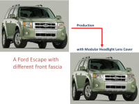 A Modular Design for Styling: This modular design of automotive light lens cover allows consumer to choose what head and tail light designs he or she likes independently of reliability/quality, performance, fuel economy, and cost of a car. It offers an aftermarket choice of changing the head and tail light design after purchase of a car. This modular approach provide the most effective way of offering consumers the most possible choices of the head and tail light styling. It is easy to install and remove by a consumer - just attach or remove the lens covers and you are done. It doesn't affect the function of the head and tail lights. The consumer can also "update" the styling of his or her car by replacing the installed lens covers with newer designs.