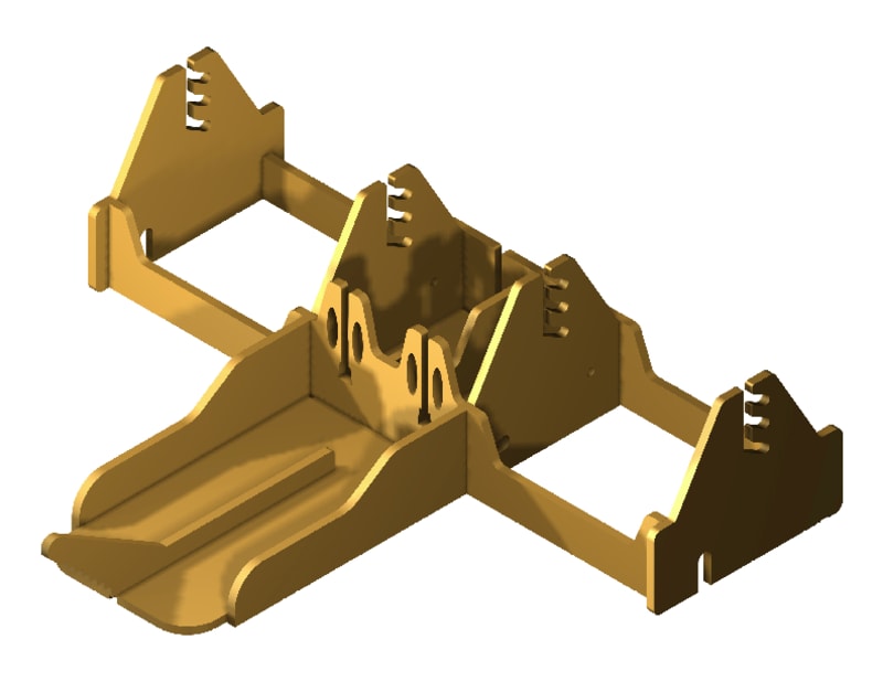 The trekease is designed to be assembled in about 10 minutes, with a precision interlocking frame cut on a CNC router and made with 1/2" cutting board plastic ( recycled HDPE or UHMW). Other components are made from recycled aluminum and stainless steel. The device is designed to not rust when exposed to moist environments and occupy a minimal footprint.