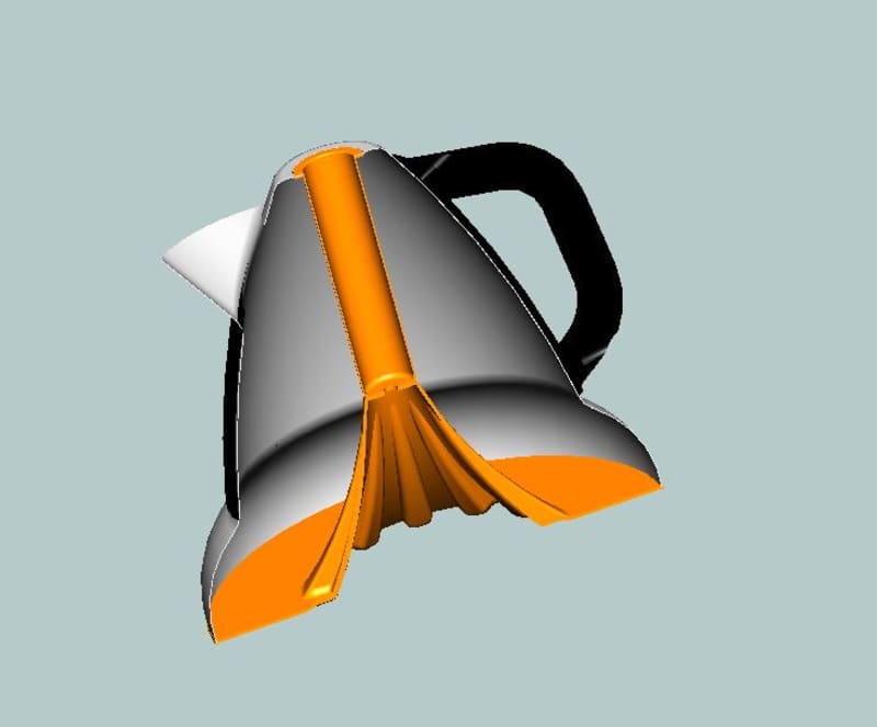 As can be seen in the attached images, such a kettle could be made of parts that are inexpensive to form and easily assembled. Consequently, a purchaser of a center flue kettle would heat water faster, use less energy and find it more comfortable to use than currently available kettles. While most recent kettle designs attempt to differentiate themselves through aesthetic elements, this kettle is distinguished by a design that is derived naturally through form following function.