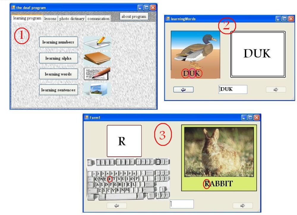 it into writing that appears to the deaf person to read it. Any word he does not know he just marks on it to know its meaning by a picture that explains it. Then he writes his answer and the program speak it aloud for us to hear it. The program contains a few saved sentences to