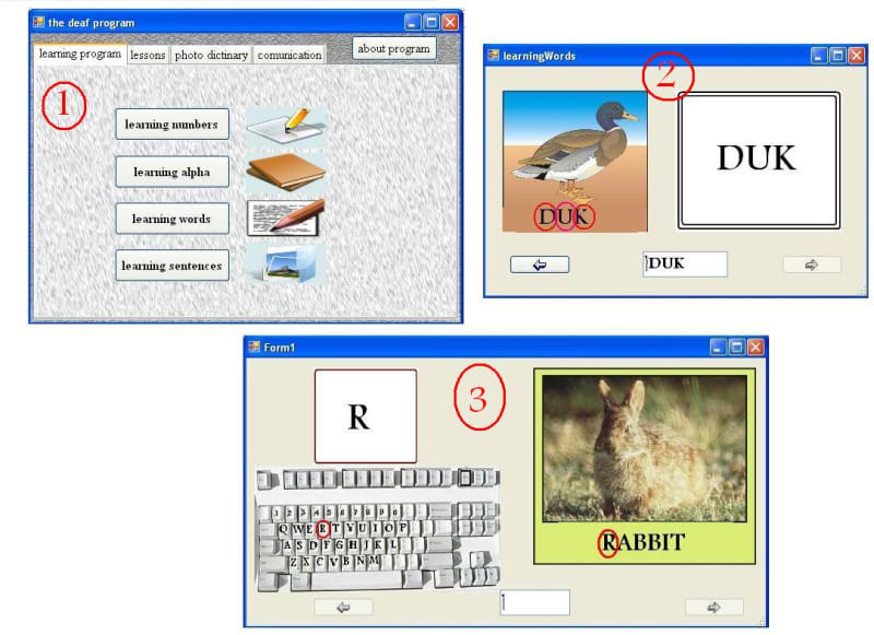 Photo dictionary ( picture 4 ) that enables deaf person to search for any word to be explained by photos (the dictionary currently contains 1,400 words)