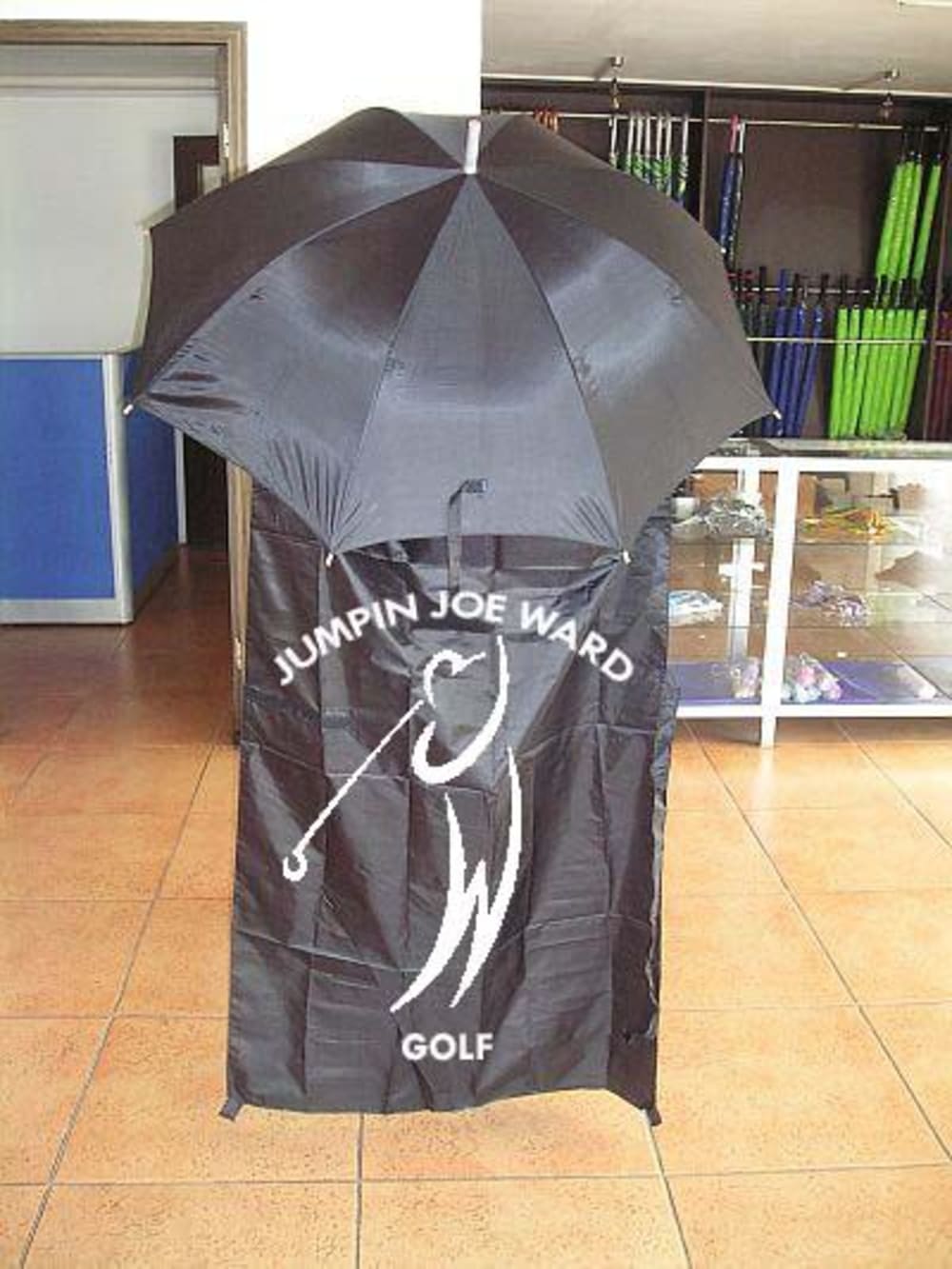 You have a Two-N-One Umbrella which can be used with or without the slicker. You can roll-down slicker tuck under while sitting at an outside/sporting event; you can personalize the roll-down slicker with your company's logo or ANY logo. You can stay dry while walking from your car to office, home, in the parking lot, around school or at a sporting event while sporting ANY logo down the back.