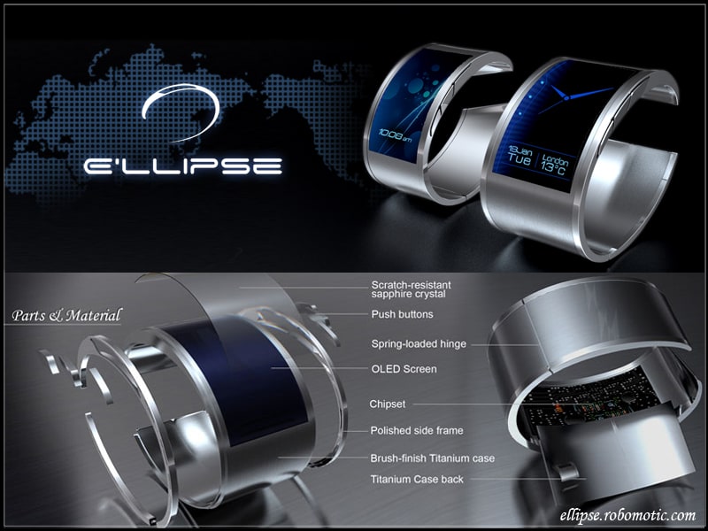 Sleek and minimal? Check. Large screen? Check. Oodles of tech? Check, check and check! E’llipse is a watch to end all watches. Why? Because it has a fancy processor and the latest algorithms in human-machine learning. Yes it learns you! It knows what you want and keeps you up to date. That’s not all. ZigBee and Bluetooth modules enable better indoor localization, an impossible feat for GPS. The UI is based on widgets – one for every kind; time, weather, calendar and a custom API lets developers get creative.