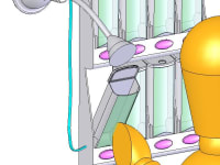 The Shower Spa is ready to be filled and put to use. By placing your fingertip in the recess of one of the lids on the top, the user can pull forward gently to swing the unit out into filling position. The unit sealing lid is hinged in the back to allow access to fill the dispenser without completely removing it. Once filled the lid reseals the dispenser, and only allows air to enter the chamber as the liquid dispenses at the bottom. The unit is gently pushed back into its dispensing position. After you have placed all your shower needs into the dispensing bank, you can simply store away all those cumbersome bottles away from your shower area until your next refill. The front panel of each dispenser is clear to allow the user to visually recognize their product by color. In addition, convenient writeable/removable labels can be included to mark the product in each dispenser. The whole dispenser bank can also be modular so more or less dispensers can be attached as needed