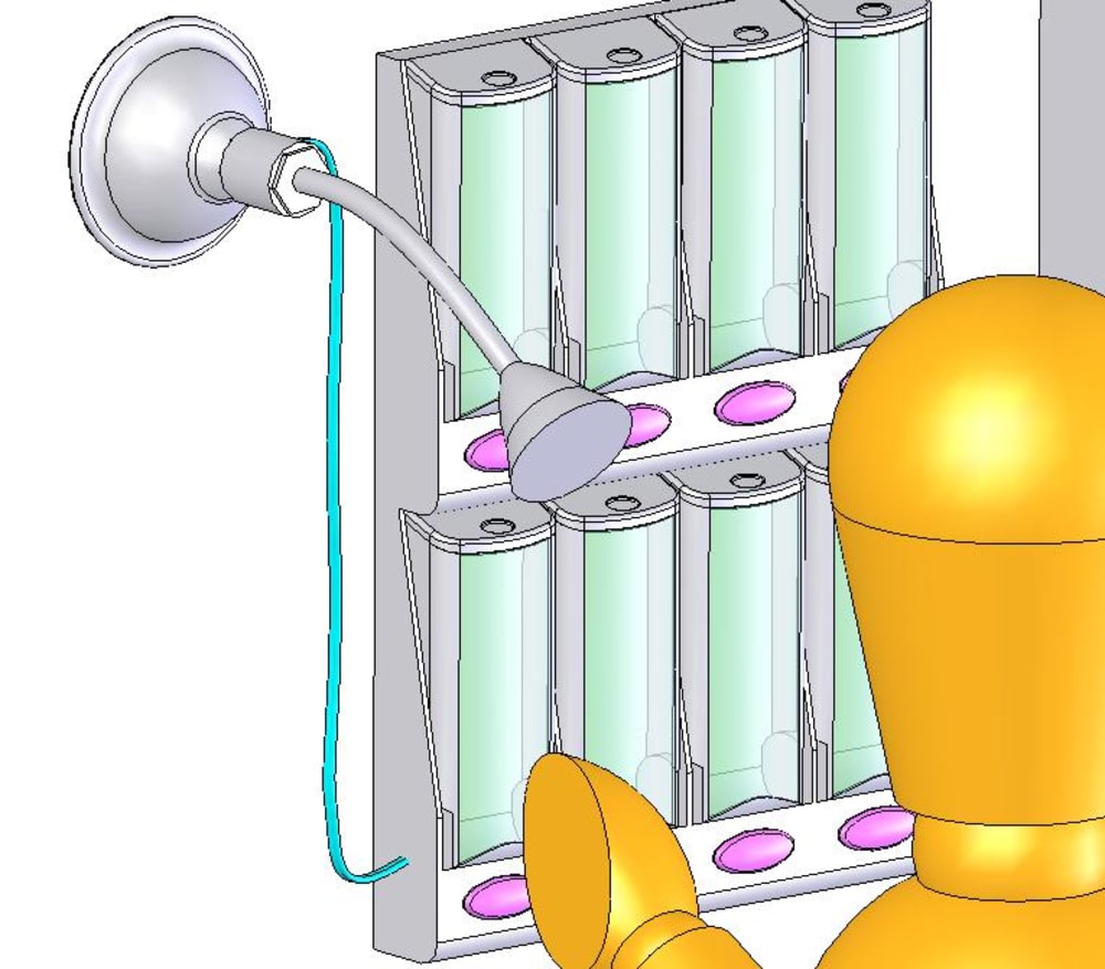 2. Then the device is mounted to the shower wall by strong double stick adhesive or by fasteners (with the use of the screwdriver).
