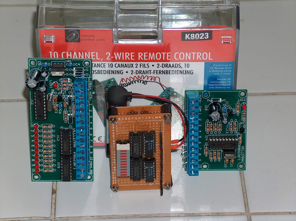 The last part of the design was to transmit the display from the oil tank location, to a remote location in the living are of the house. I chose to use a readily available Velleman brand K8023 10 Channel to 2 Wire Remote Controle. Basically, what is sent to the inputs is transmitted to the output display.