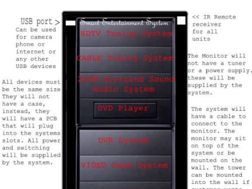This idea will eliminate millions of power cords, product cases, remotes, duplicated circuits and save much energy. It will save consumers and manufactures much money. It is a win win situation and can be made in America. It will work in all countries.