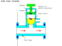 * The novel Magnetic Backpressure Regulator keeps a constant pressure on items upstream of it. It is a normally-closed valve that opens when the pressure goes above a threshold value, thus maintaining a constant backpressure.