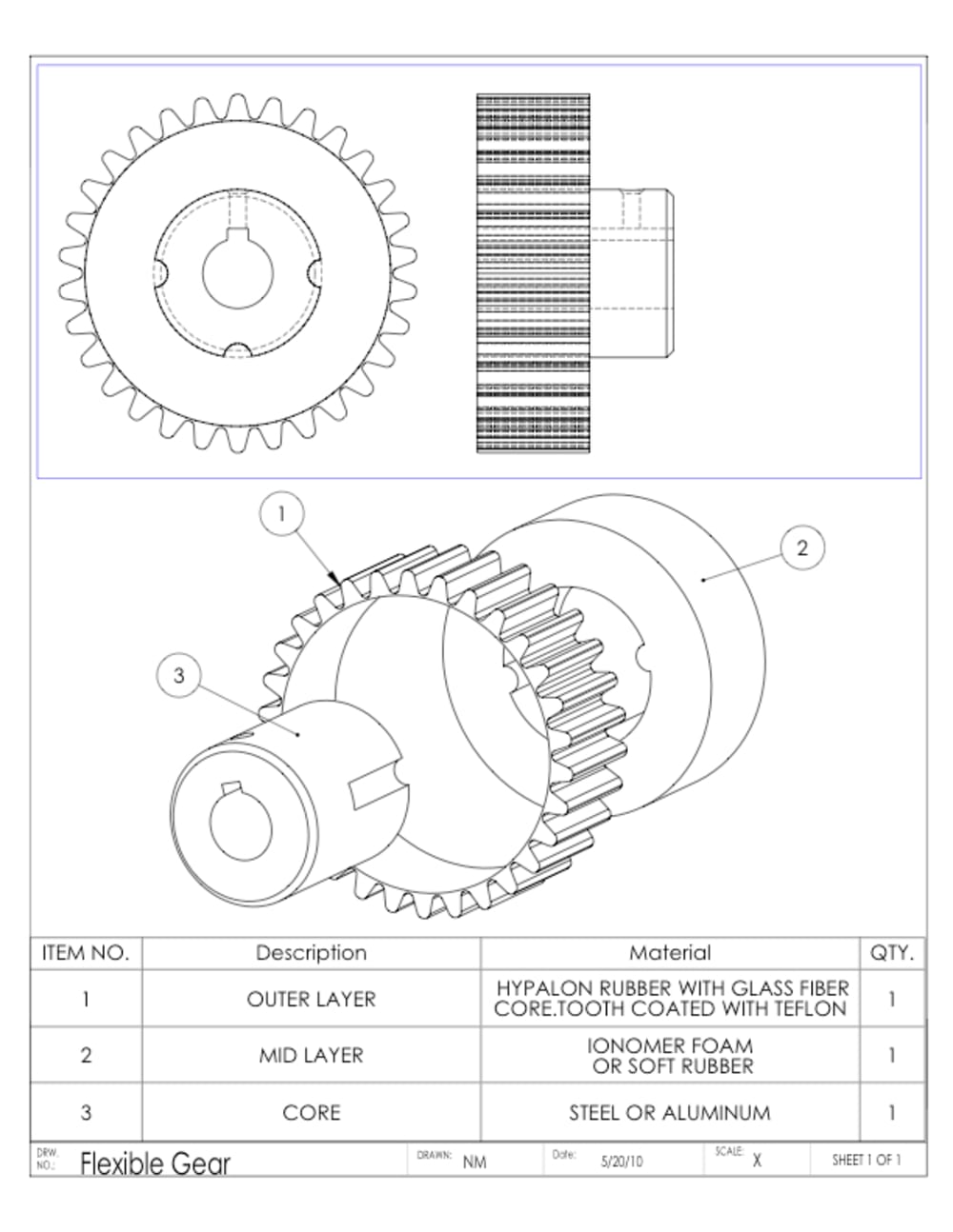 · Outer Layer, which is very similar to Timing Belt construction, but would have standard geometry of the Gear tooth and it will be turned inside-out. Teeth will be also coated with Teflon to reduce friction.