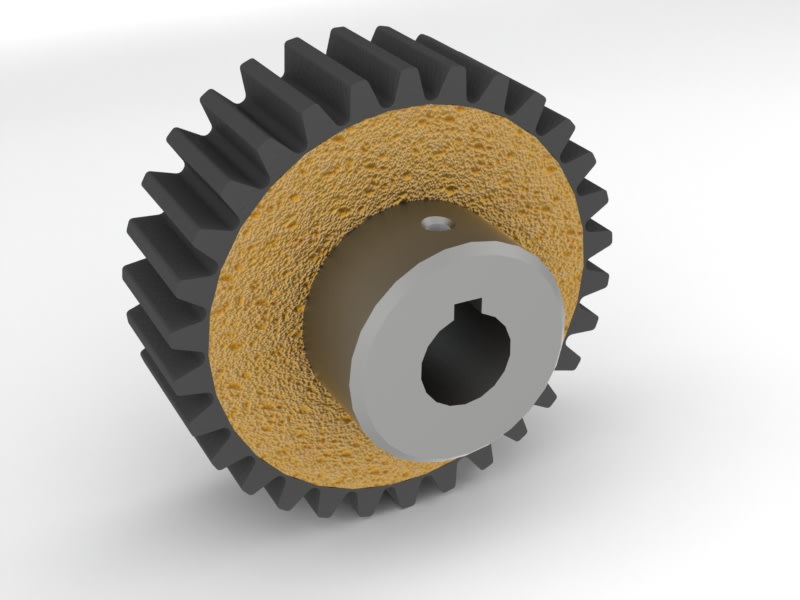 Flexible Gear would be assembled in Molding machine injecting Mid Layer after Core and Outer Layer is placed in the mold cavity. The Core can be made by casting or it could be machined.