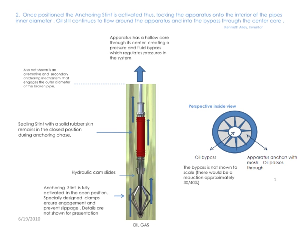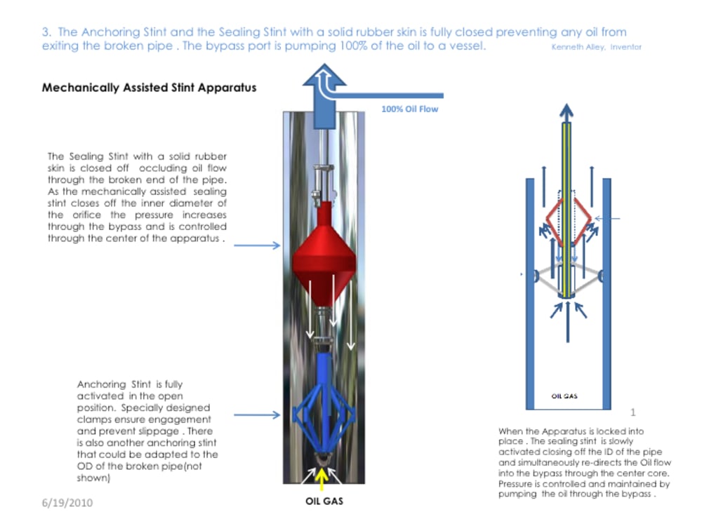 Simply put, this Alternative approach Invention repairs the existing pipe connection robotically where as the attempt to collect the oil and gas after it leaves the pressurized pipe ,has to deal with the formation of hydrates and numerous other very complicated technical issues. Thank You -Respectfully