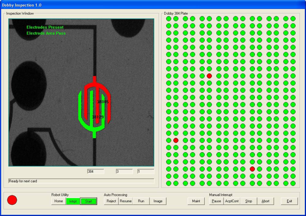 Purpose of this automated vision inspection system is to inspect Micro Electrodes for opens on an electrode assembly layer (card) mounted on PET film