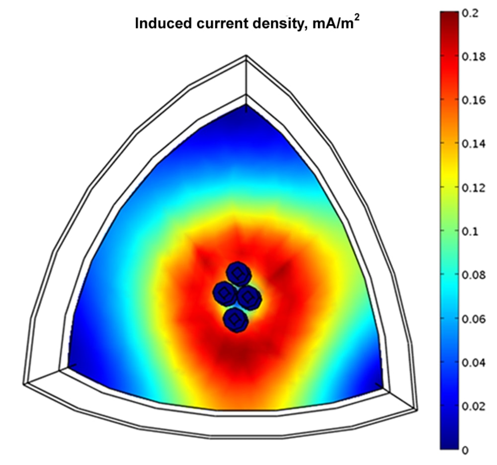 RESULTS: Preliminary 3D electromagnetic modeling using both layered sphere and realistic human head models (see Fig. 1 and Fig. 2) revealed the order of stimulating field suitable for operation. Current density induced in the target spot inside the human head was determined as well (see Fig. 3). That allowed me to draft a technical specification for the stimulation device.