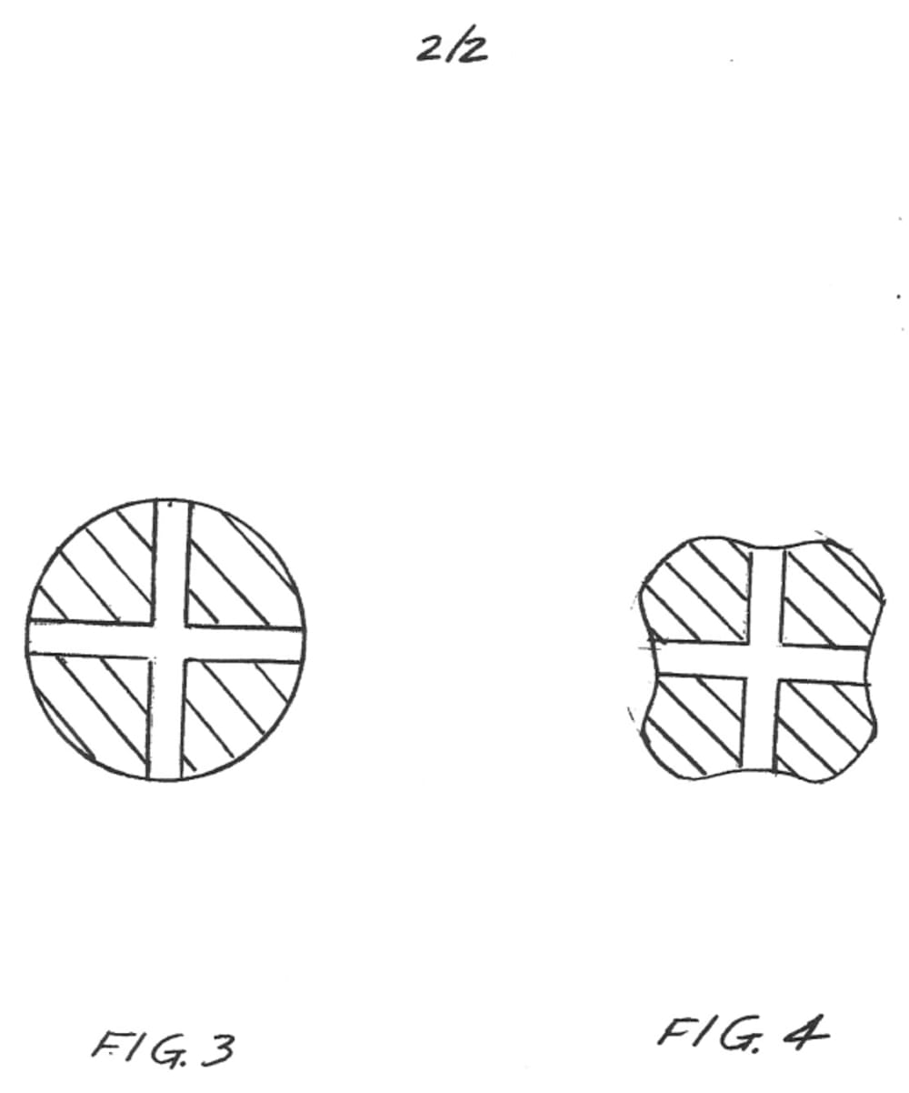 Figure 4 is a cross-sectional view similar to Figure 3 showing an alternative embodiment of the low friction catheter in which the surfaces adjacent to the flow passages have been relieved to reduce the friction between the low friction catheter and the wall of the urethra.