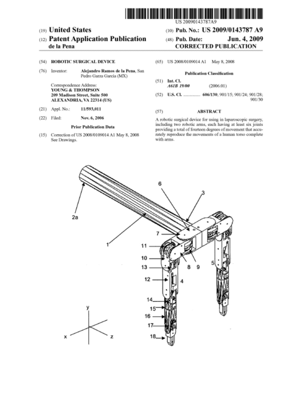 The company has developed a miniature anthropomorphic robotic torso which includes 2 arms, trunk and a miniature camera. Each arm has 7 Degrees of freedom. The invention has been entitled Robotic Surgical Device.