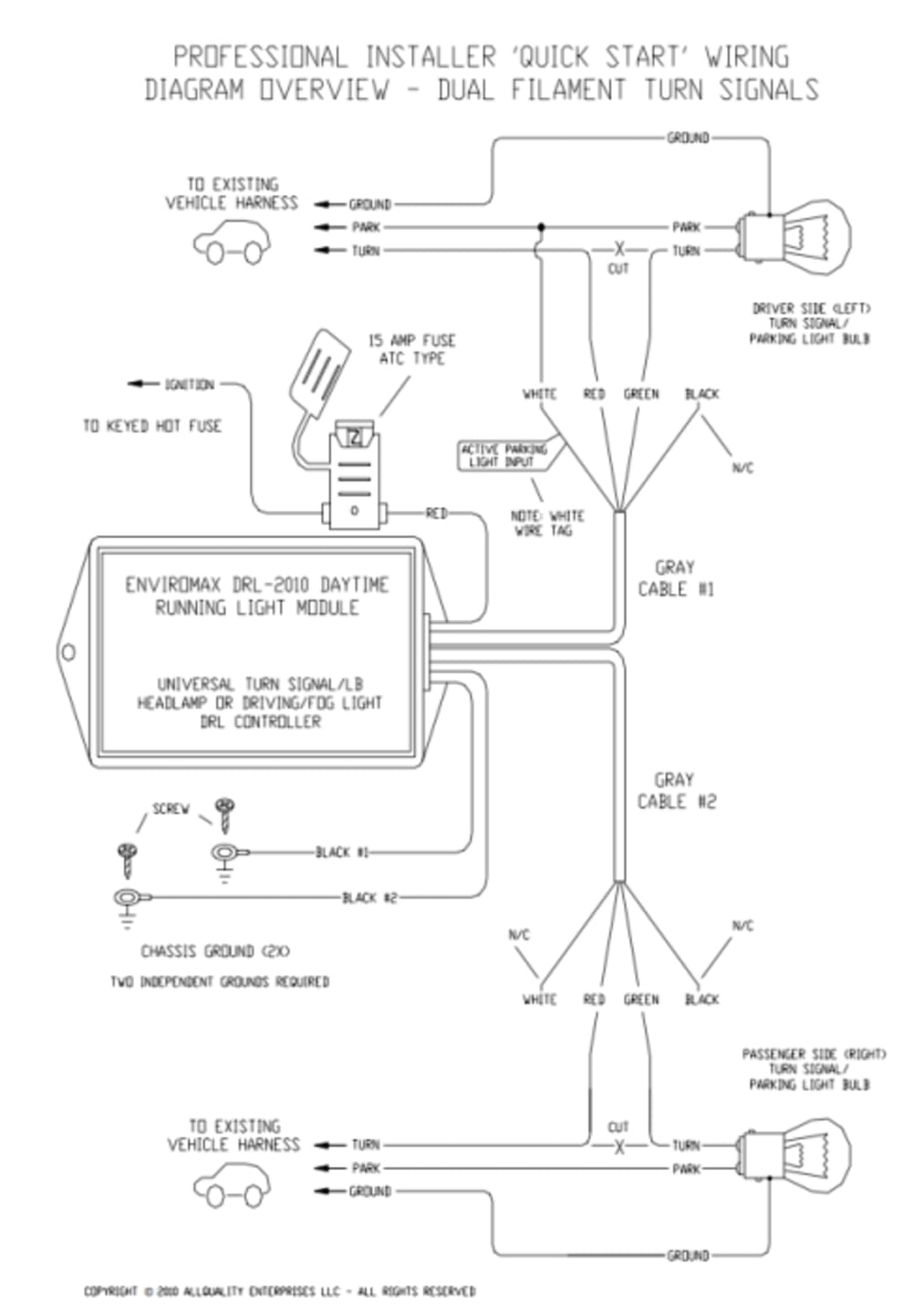 The 1998 US Federal Register [V 63, #152, pg 57, par. 2] outlines eight quotations stating why the US National Highway Traffic Safety Administration said the use of front turn signals as DRLs is desirable: 1) It eliminates all possibility of turn-signal masking by other [white light/headlight] DRLs, 2) It increases the angles at which the DRL can be seen (visible at 45 degrees) which should increase the benefit at intersections, 3) It virtually eliminates glare [with respect] to other motorists, 4)• It prevents incidents where drivers forget to turn on full headlights (with tail lamps) in inclement weather or at twilight because the headlamp DRLs provide so much light, 5) It allows motorcycles [with headlight(s) ‘on’] to keep a unique conspicuity signature, 6) They offer a fuel economy benefit of up to 0.5 m.p.g. compared to headlamp DRLs (according to 1990 test data), 7) They offer a lower cost of replacement bulbs (compared with replacement costs for headlamps or headlamp bulbs), and 8) They offer a lower cost than the reduced intensity lower beam headlamp according to the 1995 Economic Evaluation of DRLs performed by Transport Canada.