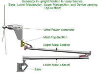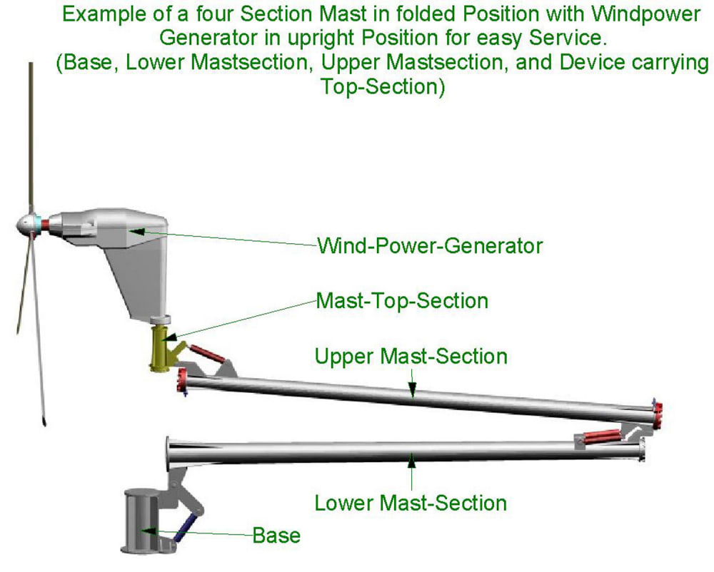 Self-erecting/locking,unlocking-folding Support Mast for heavy equipment like Wind-Generators, Lighting Equipment and more.