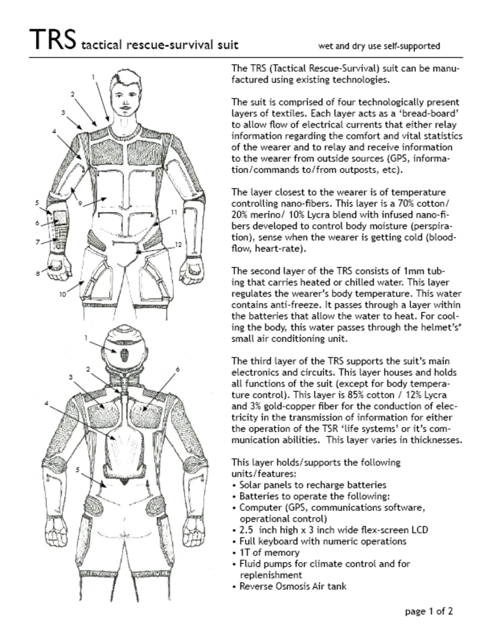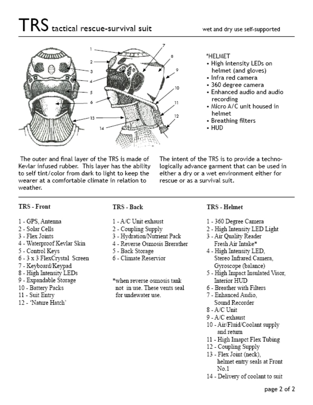 2) assist in rescue/survival via nano-technologies incorporated within the TRS