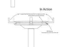 The extension spring will be attached on one end with the platform for the side rail and the other end with the road divider in the middle of the road (in case of double lane) or with the opposite side of the road in case of single lane (no mid divider). The base level of the road platform will be designed with “U” shaped channels for the ball bearings and placement of the extension springs. This can be done on continuous form or block form of required length and width depending on the road structure and available space.
