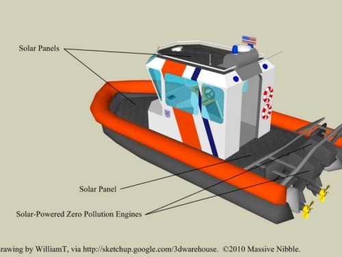 With your help, Massive Nibble© can win the money we need to build a solar-powered, water-cooled Zero Pollution Engine™ (ZPE©) for use in watercraft. Together, we can enhance the safety and security of American waters by enabling the Coast Guard to patrol on sunny days, without fuel expense and without creating any air, water or noise pollution.