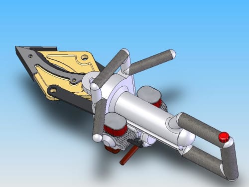 A self-contained rescue spreader system (SCRSS or Jaws of Life) eliminates the auxiliary power unit and hydraulic hoses of contemporary systems is proposed. The system has a 2-stroke, 2-cylinder engine integrated with reciprocating hydraulic pumps, composite arms with hardened steel tips, and a fuel tank integrated into the rear handle.