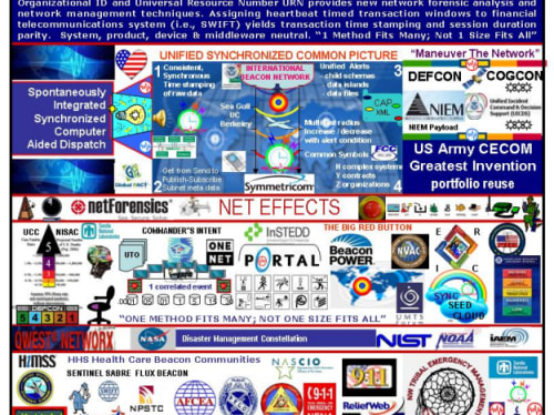 The Heart Beacon's 'sync seeding" the cloud (synchronized time stamping of data collection, events, alerts) and network re-configuration on the fly enabled by heartbeat messages (used by SWIFT, Net Centric Warfare, Public Safety) will deliver enhanced network effects and net forensics’ enhancing data analytics through the cloud in context with SYNCHRONIZED shared, cross domain service efficiencies. Synchronized,