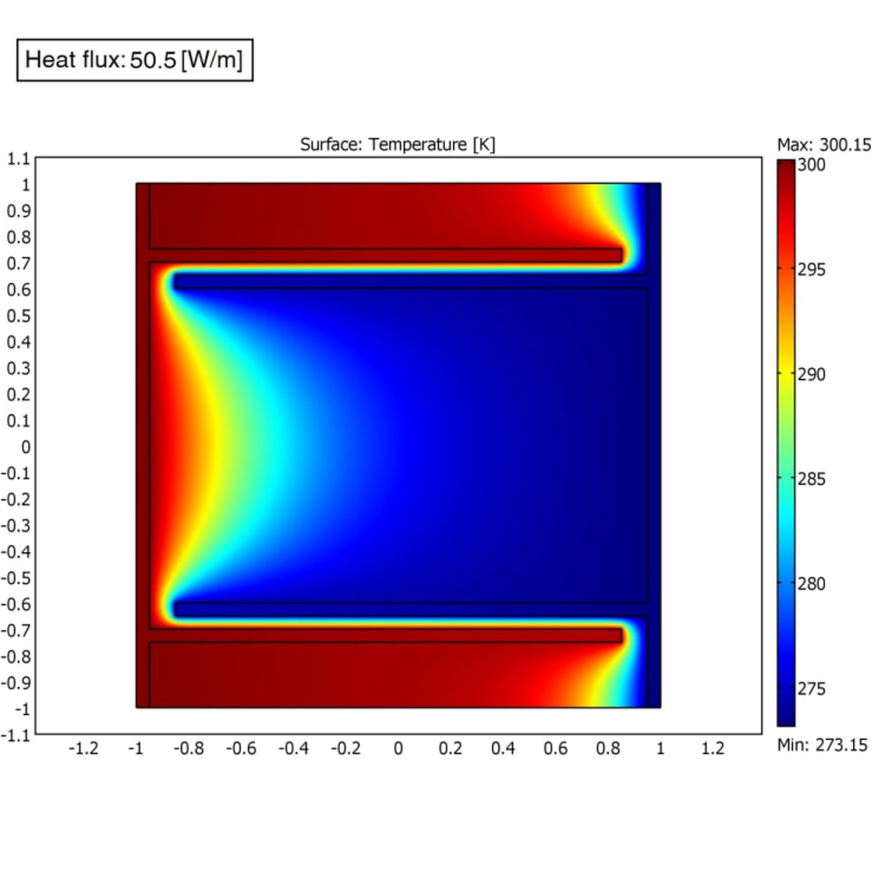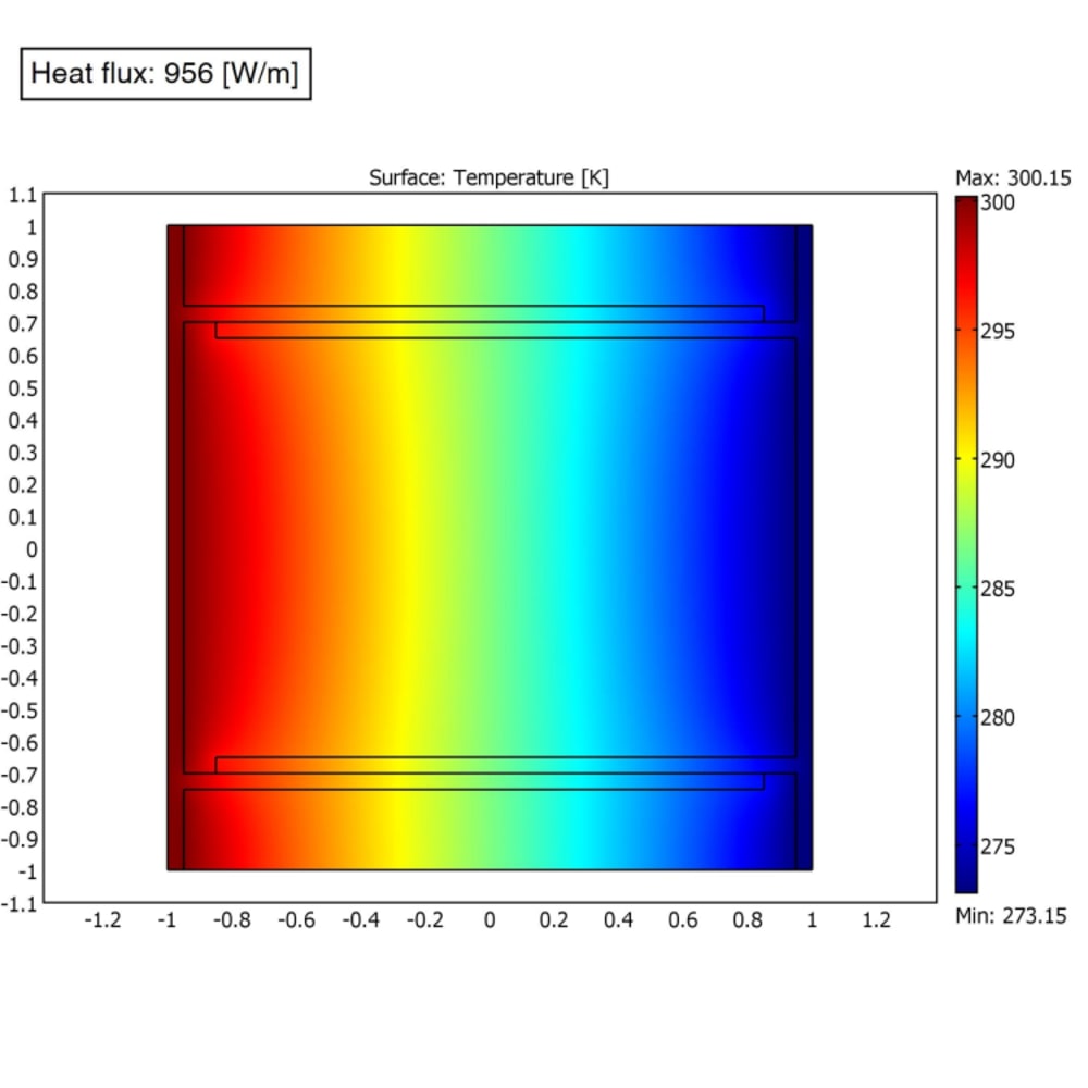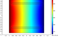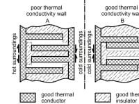 Buildings are one of the most intensive consumers of natural resources and account for a significant portion of the greenhouse gas emissions that affect the environment. In the U.S., buildings account for 38% of all CO2 emissions and represent 72% of U.S electricity consumption, EIA (2008). Thermal insulation represents the easiest and most effective building energy and efficient technology available at the moment. However, for hot days, the insulated building remains warm even if the surroundings are cooler and extra energy is needed to keep the internal thermal comfort. In this way, an innovative intelligent wall based on thermal semiconductors (TSC) is proposed to overcome such problems. TSC’s have the feasibility to operate automatically as a good conductor or as a good insulator depending of the temperature difference between inside and outside. The idea behind TSC’s is quite simple and combines thermal expansion/contraction and materials with distinct thermal conductivity. The TSC system presented here consists of two parallel plates of a good conductor with internal fins (Figure 1). The remaining space is filled with a good insulator and a gap is left between fins with corresponding apparent surfaces. Higher temperatures at the left side of the wall promote its thermal expansion. On the other hand, lower temperatures at the right side of the wall promote its thermal contraction. As showed in Figure 1-A, this conjugated effect keeps the corresponding fin surfaces apart from each other enhancing, in this way, the thermal insulation between the left and the right regions. On the contrary, when higher temperatures occur at the left side and lower temperatures occur at the right side, thermal expansion and contraction takes place, respectively (Figure 1-B). Because of this conjugated effect, the contact between the corresponding fin surfaces takes place increasing the capability of the system to conduct thermal energy. Thus, this TSC system automatically switches between good or poor thermal conductivity wall by appropriate temperature gradients. In practice, TSC’s can be manufactured by using conventional materials available in the market today. TSC’s can replace standard thermal insulations panels without difficulty. Even typical insulation materials are suitable, preserving, in this manner, businesses and jobs. The use of good conductor materials is minimal considering that, by the Fourier Law, higher heat transfers can be achieved by thin walls. The above mentioned features enhance the manufacturability, marketability and cost-effectiveness of TSC systems. In addition, TSC walls can be employed in roofs and floors also. Based on computational simulations, a TSC ratio (i.e., the ratio between the heat transfer conduction in one direction and in its respective reverse direction) in of 18.9 was achieved (compare Figure 2 and 3). The encouraging results revealed a wide horizon for developing promising TSC systems which will provide solutions for many thermal design problems (heat storage systems, nanotechnology, spacecraft , clothes, etc.) in macro-, meso-, micro- and nano scales. Concluding, by using TSC’s, buildings can make the most of the heat transfer crossing their envelop maintaining the thermal comfort, saving money and avoiding CO2 emission. (SDG)