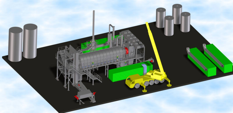This rotary kiln pyrolysis technology with indirect heated rotary kilns is a long time experienced technology for calcination and mixed waste disposal.