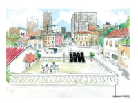 The module is composed of a thermal solar system with an absorption surface and proportioned to the needs of a standard household. Few models are required to cover different conditions arising from latitude. The supporting structure is a free-standing and transportable box containing hot water tank, heat exchangers, pumps, sensors and regulators and an auxiliary boiler (gas or other fuel) and all the plant design allowing the module circuits to be kept independent from the building circuits. Solar collectors form the South facing side, slanted e.g. at an angle of 80° optimal for winter needs too. The North side is an insulated barrier. One of the remaining sides accommodates the entrance door for maintenance purposes. The floor is a basin that would contain any spills deriving from the systems. The roof is made of reflective material, allowing with the added option of photovoltaic panels, a certain independence from urban services.