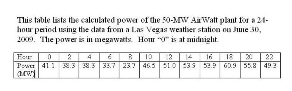 The attached table shows the 24-hour power output in the summertime for an AirWatt plant at Las Vegas, which can use that power for air-conditioning.