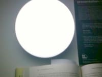 The Solglobe is a spherical light emitting device that produces 100 lumens (20watts), production models can be scaled up to 800 lumens (50watts). The invention can be charged from both direct and indirect sunlight. It requires a small external solar panel for charging batteries (seven hours for a full charge) and has a detachable hand crank that harvests kinetic energy (this serves as an alternative power source). The Solglobe provides an output of 6 hours on the maximum mode, 8 hours in the medium mode, and 10 hours in the low mode. In ambient mode (indirect light is collected), the Solglobe can charge indoors when placed near a window (the charging times in ambient mode can vary depending on the luminous intensity of the sunlight, and can take up to 10-12 hours). The Solglobe also contains a charger for cell phones and portable low power devices.