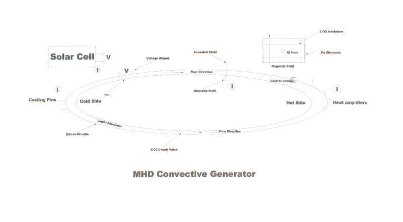 It is based on Hartmann flow in MHD at a temperature difference of about 440 Celcius based on the materials represented. It would require useing the ISS as an Engineering platform orbiting the Moon and would also serve as a preassembly and rescue station. The project would require the construction of Solar Panels for startup, mantenance and control power.