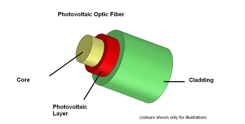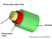 This photovoltaic optical fiber can be used to substitute the present day optical fibers used in the field of data transfer and communication. An addition application is that this optical fiber in bundles can be used to give natural lighting to interior of buildings and other structures; it not only provides light or transfers data but also produces energy simultaneously. More than any other advantage this energy producing optical fiber doesn't need and specific working space like the solar cells or the wind mills.