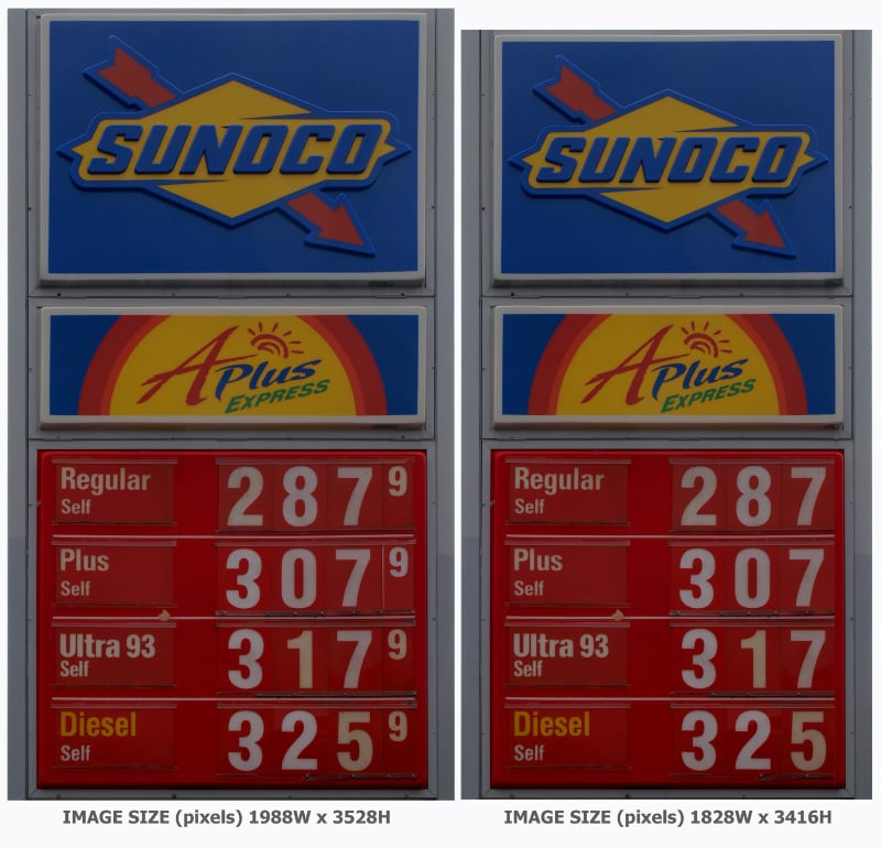 Traditional price displays often consist of printed plastic signboards in metal frames, with tracks holding individual plastic numeral panels, which are then combined to display the price. By eliminating the 9/10 numeral panels, plastic usage would be reduced for both numeral panels and signboards. Based on measured examples, overall signboard size could be reduced by ~10%. And eliminating the need for plastic 9/10 numeral panels could save 3,400 4x8 sheets of plastic; a stack 28 feet high, weighing over 33 tons !!