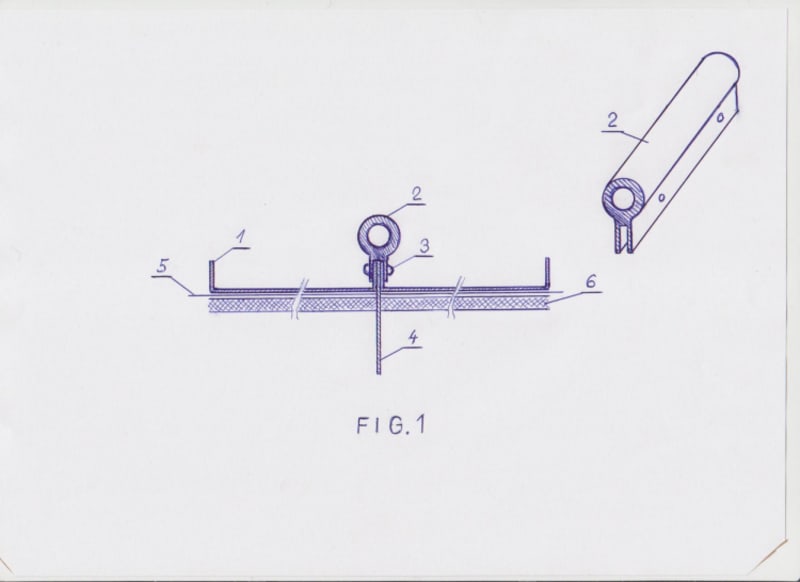 Water-proofing and heat collecting part of the roof is made of Cu or Al sheets 1. Edges of sheets are bended up. Extruded profile tube 2 and rivets 3 connect bended edges together and take out heat of environment by refrigerant. Contact surface between the tube and sheet is fitted by silicone gel to improve heat transfer. Plastic foil 5 and thermal insulation 6 are under metal sheets which are attached to roof structure by stainless clamps 4. Cross section of the roof system is showed in figure 1.