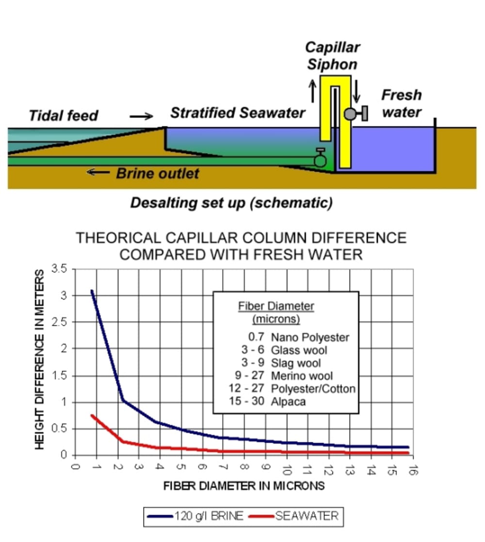 This design will lead to other product improvements, as the use of capillar siphons which energy comes from the combination of capillarity (adhesion) and gravity (siphon) will allow further developments in water sanitation & potabilization, filtering difficult solids, and water desalinization, among others. Lab tests done in desalinization using cotton fiber are promising. A rough idea is included in the graphics.