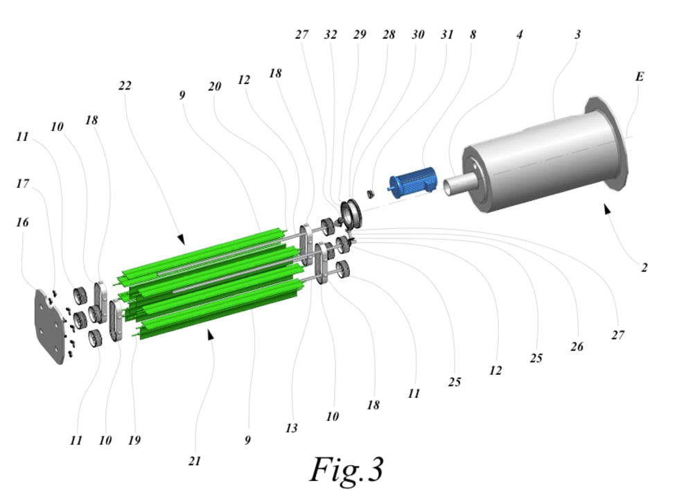 Thanks to their small size, many of the wind capture components (nos. 9, 10, 11, and 13 in particular, i.e. those most subject to wear) and other components can be more easily repaired in the event of failure or periodic replacement.