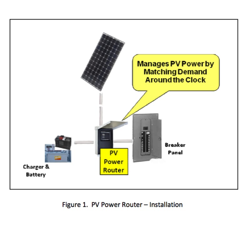 The PV Power Router eliminates the need for a contract and the 2-channel meter. It works around the clock to route PV-generated power to the loads only when needed, and stores the rest to be used during sundown. The PV Power Router can communicate with the future smart grid, and smart appliances to substantially reduce peak power demands on the grid by air conditioning during the hottest part of the day. Installation of the router is very straight forward as shown by Figure 1.