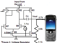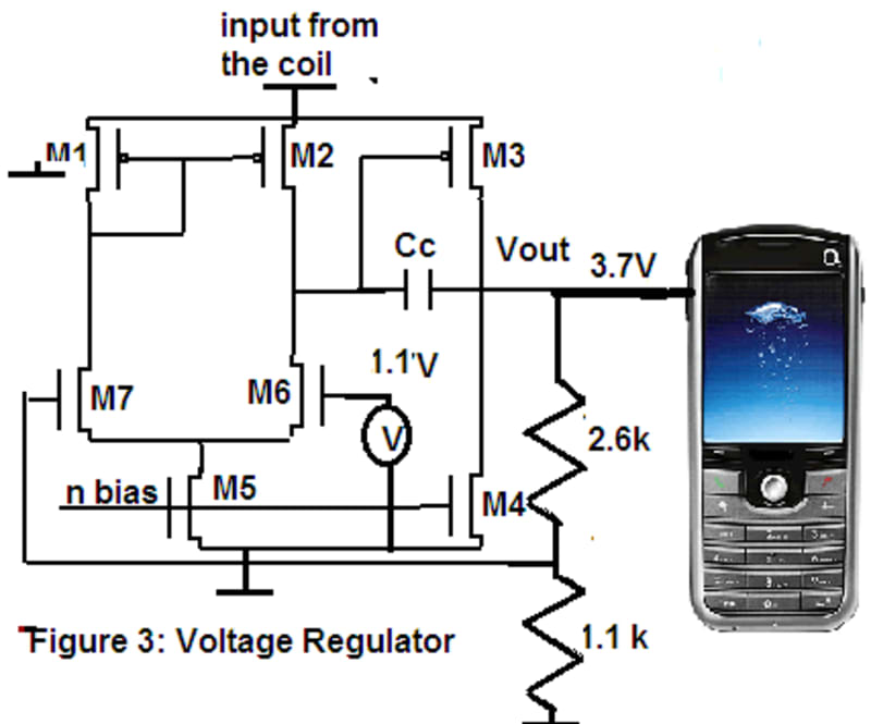 Using electromagnetic principles we can achieve this target provided we are not hampering the tailor. In this work we have placed magnet on the shaft which rotates and a coil over it. This will act something like AC generator.We have avoided the direct mechanical contact in dynamo which will reduce the efficiency. We have embedded dynamo in the machine as shown in figure 1. Figure 2 represents the inherent gear system. However the voltage (converted to DC) generated will depends on the speed of rotation of the sewing machine wheel. Voltage regulation can be achieved using the negative feedback. An opamp is placed in negative feedback as shown in figure 3 and 1.1V is the band-gap reference voltage what is intended (in our case its 3.7V).