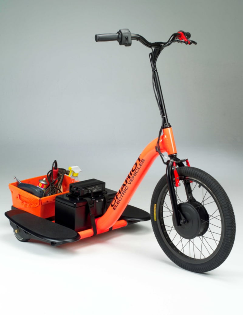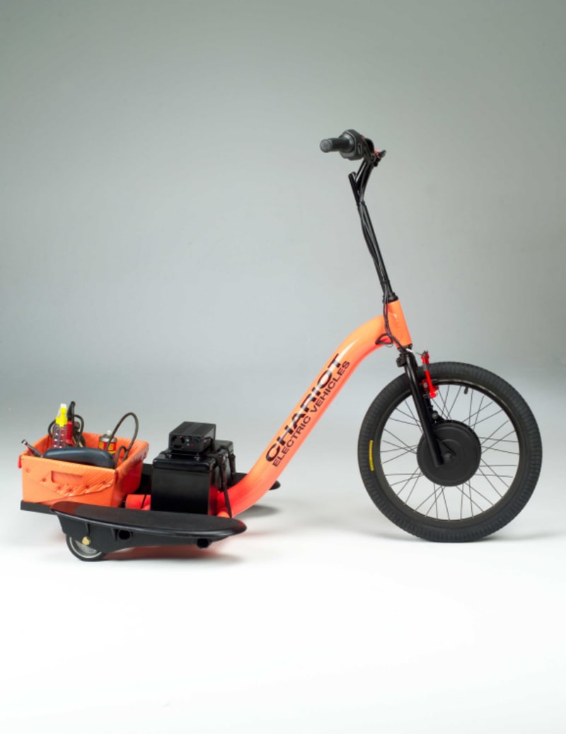 Chariot Electric Vehicles has combined the best attributes of the scooter, bicycle and the electric utility/golf cart to create a unique electric three-wheeled vehicle that provides a natural stability unequaled in its class. The Chariot has an exciting functional design that is safe, cost effective and environmentally friendly. The Chariot will be manufactured in the USA.