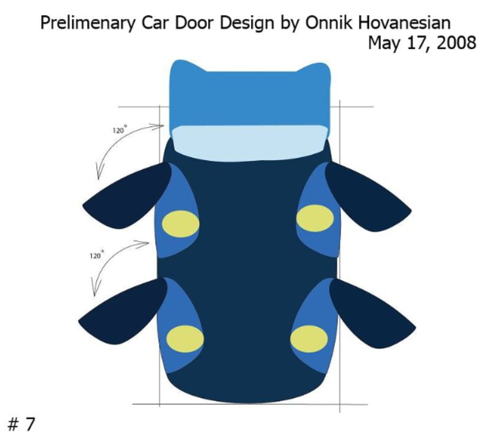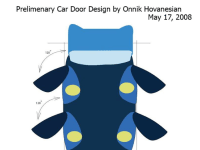 I have been working for several years on this car door design and from my observation, experience and testing from just how people enter and exit front and back seat of a car,
