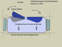 end of the door roof area. This again will be shown in the several proposed designs. I believe that you will find this small design change to get rave reviews and astonishment by the media and the consumers NOT only on the market for buying a very unique automobile. I also believe that the old phrase "WHY DIDN'T THEY THINK OF THIS SOONER" will repeatedly on the minds of millions. This car Door Design has been submitted for consideration to GM, Toyota and Nissan automobile manufactures.