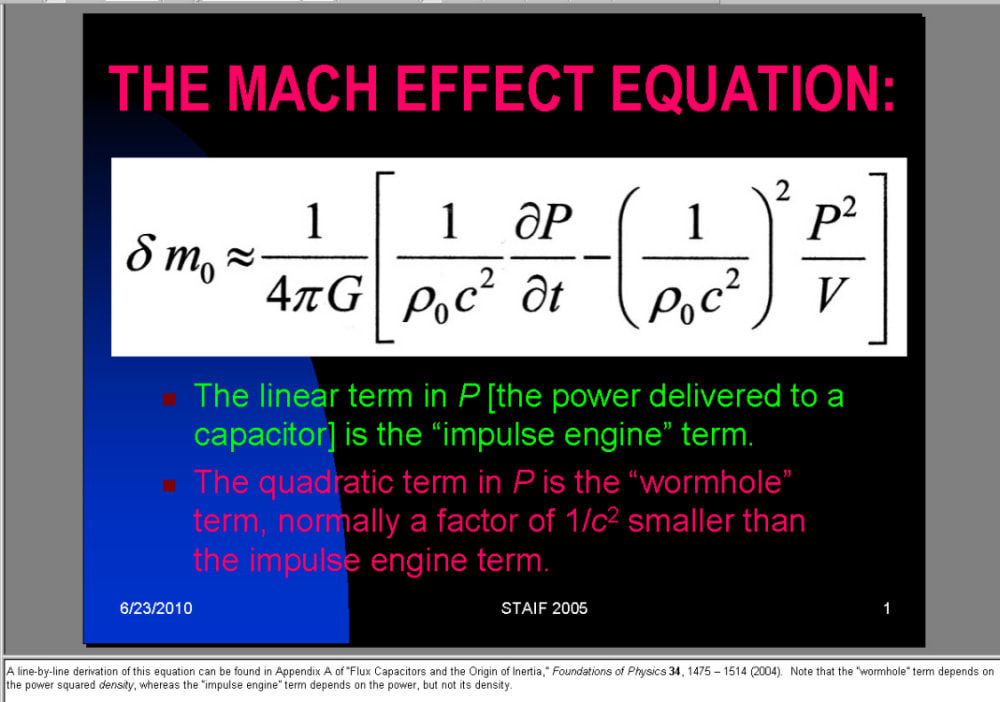 Physicist Ernst Mach's principle of the source of inertia, the basis for Einstein's theory of general relativity, that local inertial effects are due to the gravitational attraction of distant matter in the local universe, has been expanded upon in recent decades, first by Sciama, and recently by Woodward, to propose the possibility not just for an "impulse drive" propulsion technology, but the Mach Effect equation also includes a term that enables the use of Mach effects to strip electrons of their positive gravinertial mass, exposing their extreme negative bare rest mass, allowing them to be used as the sort of exotic matter theorized by Sciama and Alcubierre to achieve warp effects for high speed space travel and to anchor the entrances and exits of wormhole structures for rapid transit of spacetime.