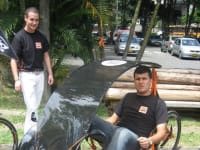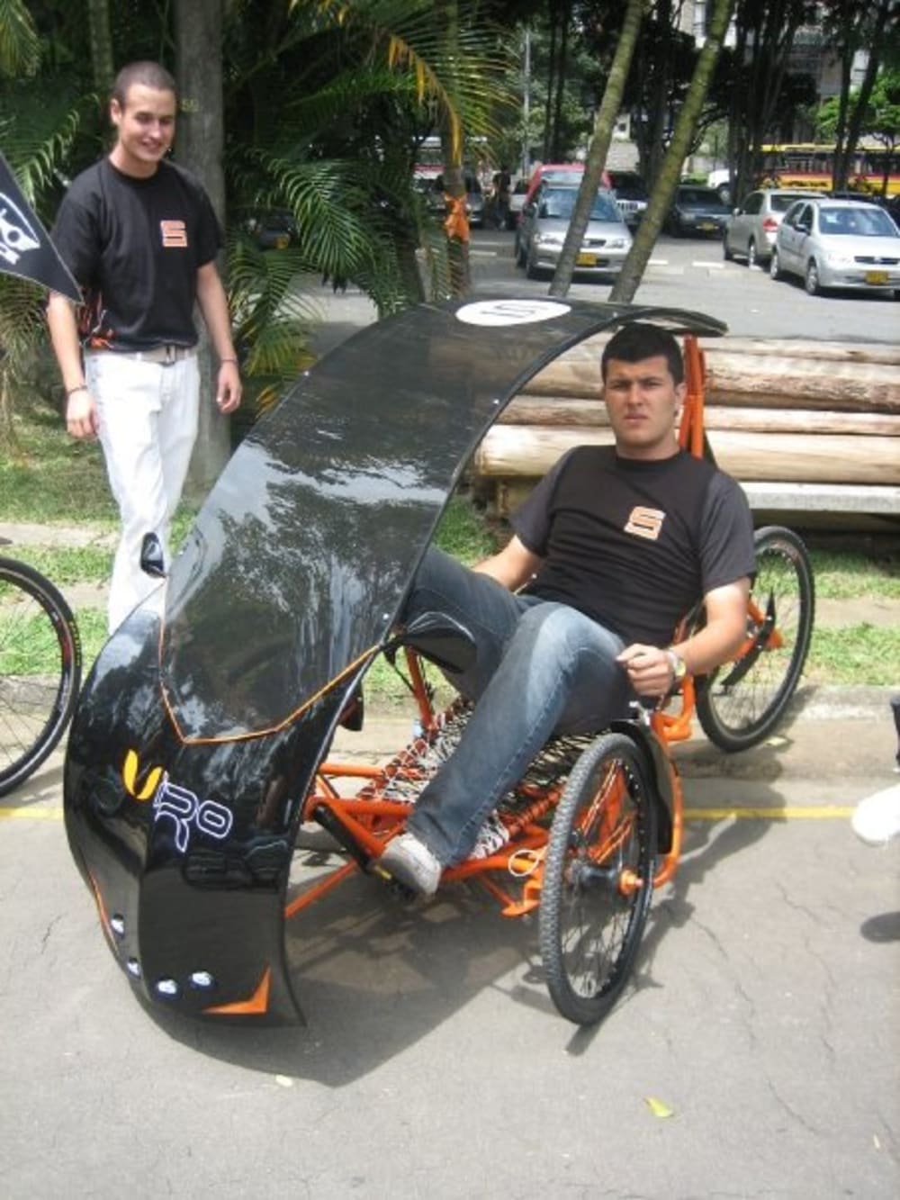 A Velomobile or HPV (Human Powered Vehicle) is a human powered vehicle with an aerodynamic shell (fairings) closed for protection and better efficiency.